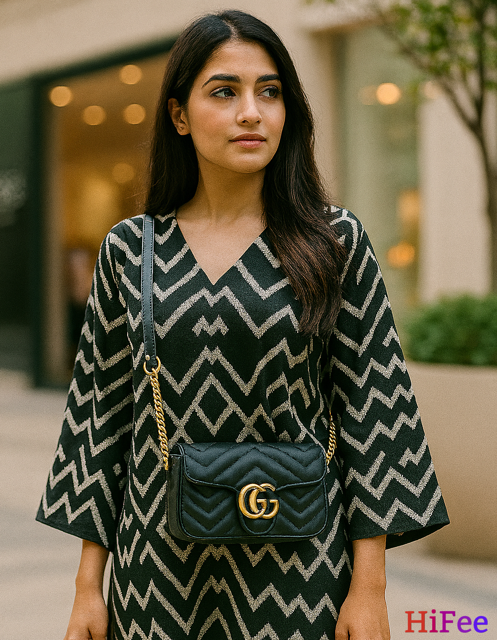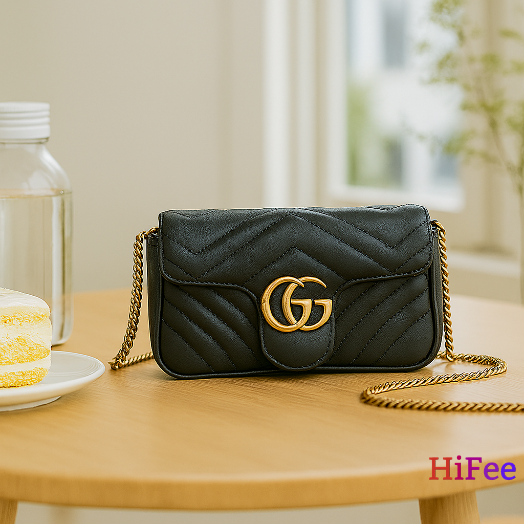Elevate your everyday style with this luxurious Black Quilted Chain Shoulder Bag, featuring the iconic double-G gold hardware. Designed for the modern woman who values elegance and function, this handbag is crafted from high-quality vegan leather with a chevron-stitched finish, offering a premium feel with eco-conscious appeal.